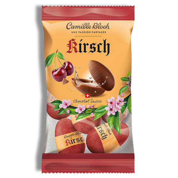 Ingrédients: sucre, beurre de cacao, poudre de LAIT entier, kirsch (10%), sirop de glucose, pâte de cacao, poudre de LAIT écrémé, dextrose, eau, arôme naturel kirsch, émulsifiant: lécithine de colza, extrait pur de vanille. Peut contenir des traces d'AMANDES, NOISETTES, SOJA. Chocolat au lait: 31% cacao minimum. Contient de l'alcool.
