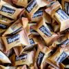 Ingrédients: sucre, NOISETTES (dont 9% entières), poudre de LAIT caramélisé 20% (poudre de LAIT entier, sucre caramélisé 3%), beurre de cacao, graisse de coco, farine de SOJA, pâte de cacao, émulsifiant: lécithine de colza, extrait pur de vanille. Peut contenir des traces d'AMANDES. Chocolat blanc 27%, fourré praliné 64%. Chocolat blanc: 23% cacao minimum.