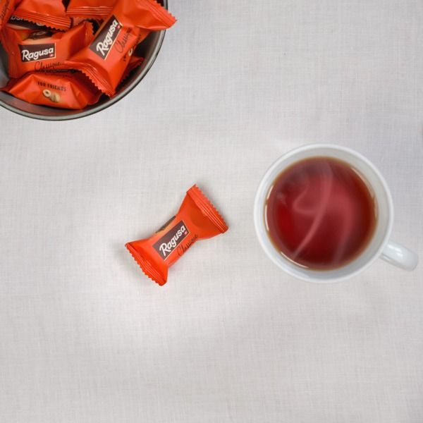 Ingrédients: sucre, pâte de cacao, NOISETTES (dont 9% entières), graisse de coco, poudre de LAIT entier, poudre de cacao, farine de SOJA, beurre de cacao, BEURRE fondu, émulsifiant: lécithine de colza, extrait pur de vanille. Peut contenir des traces d'AMANDES. Chocolat 27%, fourré praliné 64%. Chocolat: 60% cacao minimum.