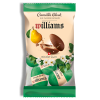 Ingrédients: sucre, beurre de cacao, poudre de LAIT entier, eau de vie Williams (8%), pâte de cacao, poudre de LAIT écrémé, eau, arôme naturel: poire, émulsifiant: lécithine de colza, extrait pur de vanille. Peut contenir des traces d'AMANDES, NOISETTES, SOJA. Chocolat au lait: 31% cacao minimum. Contient de l'alcool.